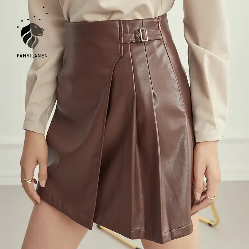 Fansilanen Pu Cuir Mini Jupe Plissee Femmes Automne Hiver Elegant Court A Ligne Jupe Femme Vintage Taille Haute Jupe Bas Aliexpress