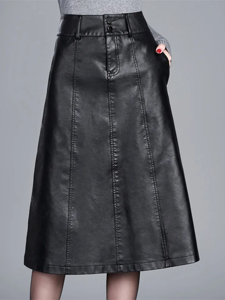 21 Tout Match Jupes Femme Automne Hiver Grande Taille Taille Haute Au Dessus Du Genou En Cuir Mi Longue Jupe Coreenne Mince A Ligne Jupe Aliexpress