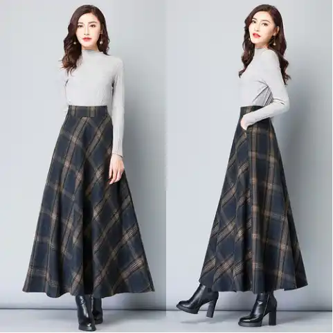 Faldas Mujer Moda Maxi Jupe Longue A Carreaux Femmes Automne Hiver Jupe Femme Une Ligne Taille Haute Vintage Jupe En Laine Fw625 Aliexpress