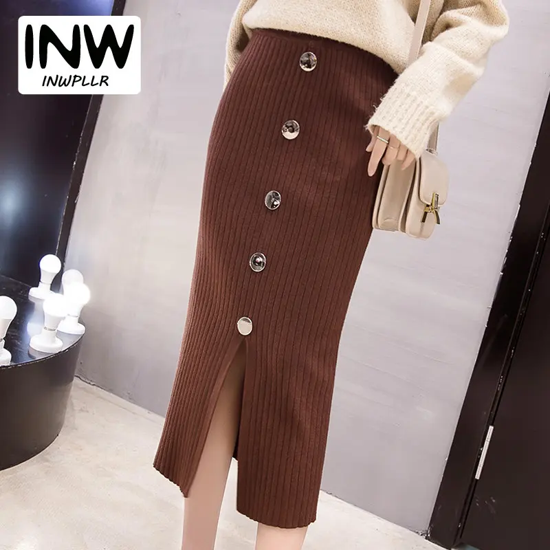 19 Femmes Jupes Automne Hiver Style Boutons Jupe Casual Tricote Jupe Femme Taille Haute Faldas Mujer Midi Moulante Jupes Aliexpress