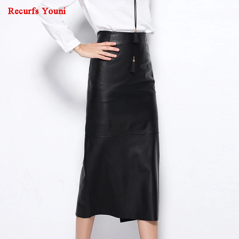 Rys7305 Hiver Droite Saia Femme Veritable Cuir Nappa Ol Sexy Maxi Jupe Femme Fendu Noir Jupe Slim Etape 80 Cm Long Gonne Aliexpress