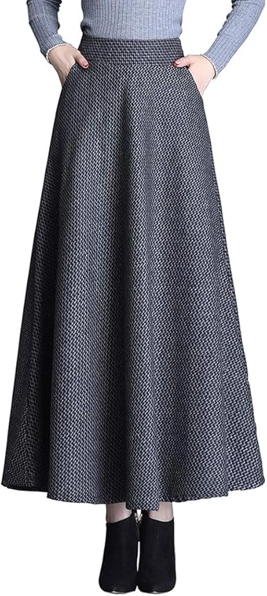 Riz Zoawd Jupe Longue Femme Vintage Elegant Houndstooth Maxi Jupes Laine Hiver Chaud Mode Taille Elastique A Ligne Taille Haute Jupe Plissee Amazon Fr Vetements Et Accessoires