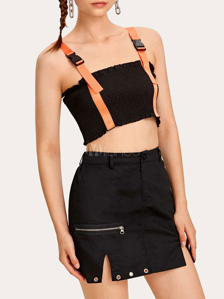 Jupe Femme Noire Fermeture A Glissiere Courte Taille Relevee Automne Et Hiver Milanoo Com