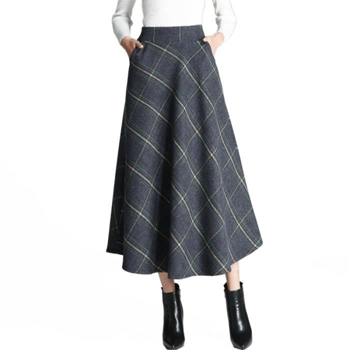 Jupe Femme Womens Haute Elastique A La Taille Maxi Jupe Trapeze Plaid Hiver Chaud Flare Jupe Longue Amazon Fr Vetements Et Accessoires