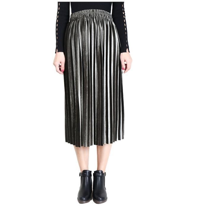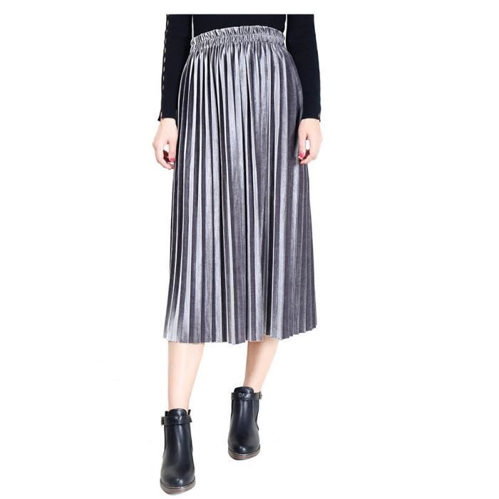 Gris Jupe Femme Mi Longue Plisse A Line Evasee Taille Elastique Velours Amincissant Grande Taille S Xl Nouveaute Hiver Automne Gris Achat Vente Jupe Cdiscount
