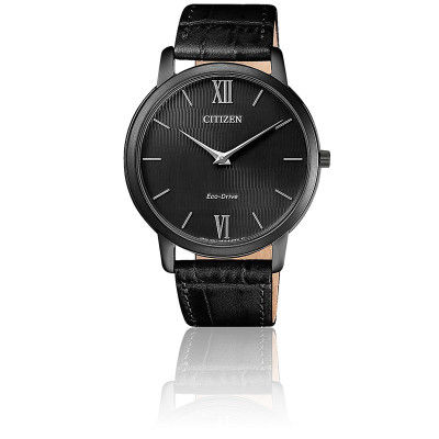 Montre Homme Citizen Aw1231 07e Montre Eco Drive Bracelet En Cuir Noir Et Cadran Noir