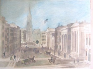 Antique 19th Century Wall Street New York 1850 Hand Colored Lithograph On Board Ebay