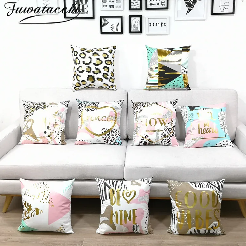 Fuwatacchi Housse De Coussin Estampage A Chaud Imprime Couverture Decoration Pour Canape Taie D Oreiller Taie D Oreiller Decoration Pour Voiture Jeter Des Oreillers Aliexpress