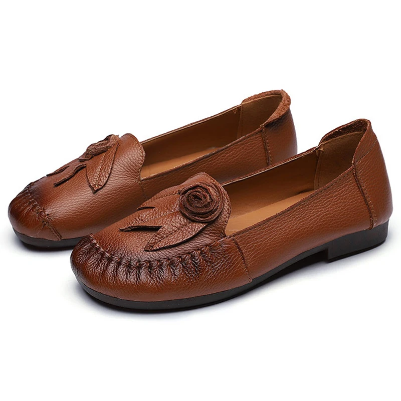 Mocassins Retro En Cuir Veritable Pour Femmes Fait A La Main Fleur Style National Confortable Doux Bas Talons Chaussures Decontractees Aliexpress