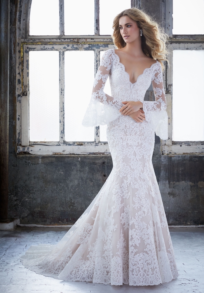 Robe De Mariee En Dentelle Avec Des Bretelle Ou Des Manches Et Un Decollete Dans Le Dos Robe De Mariage Sirene Vente En Ligne O Sunny Mariage