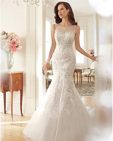 Jyl Robe De Mariee Robe De Demoiselle D Honneur Robe Decollete Dos Ouvert Epaule Au Crochet Dentelle Longueur De Plancher Double Dentelle Sirene Ivoire Us 14 4xl Amazon Fr Cuisine Maison