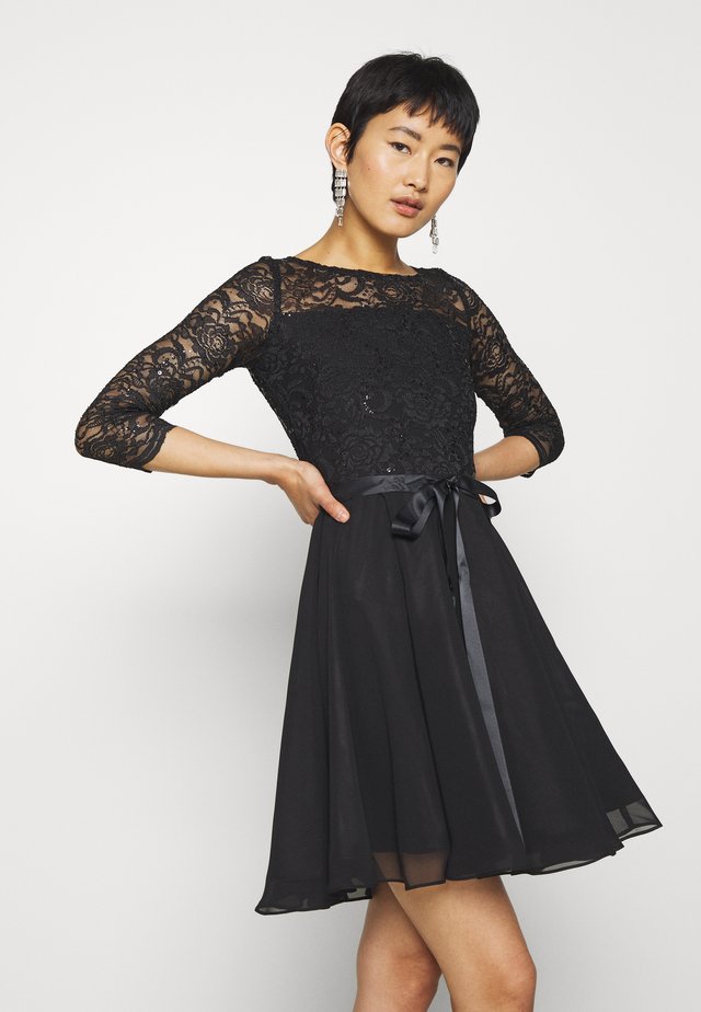 Robe De Cocktail Mi Longue Sobre Et Elegante En Dentelle Noire