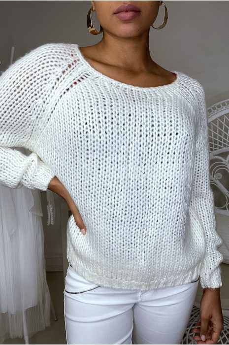 Gros Pull Blanc Tombant Et Tres Doux Pull Mode Pour Femme