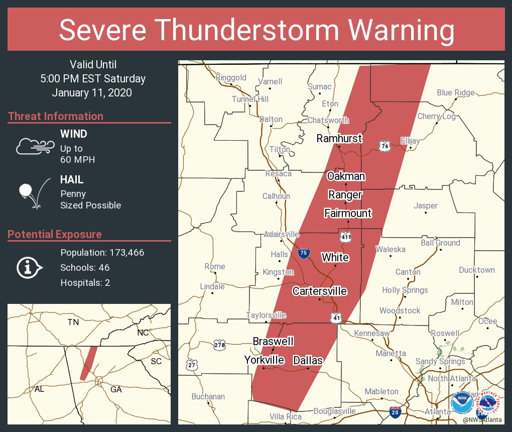Nws Atlanta Severe Thunderstorm Warning Continues For Cartersville Ga Dallas Ga Euharlee Ga Until 5 00 Pm Est