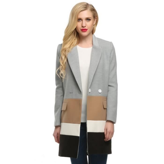 Veste Longue Femme Revers En Laine Melange Epissage Gris Achat Vente Veste Cdiscount