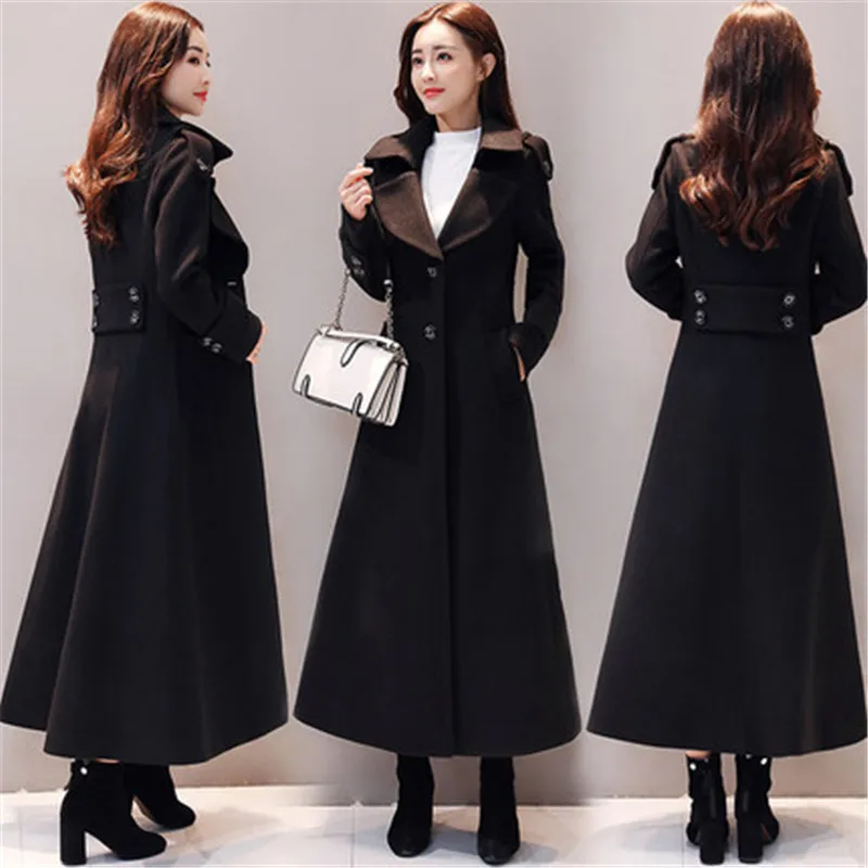 Fashion Extra Long Woolen Coat Women Autumn Winter New Waisted X Long Wool Trench Coat Black Overcoat X4 Wool Blends Aliexpress