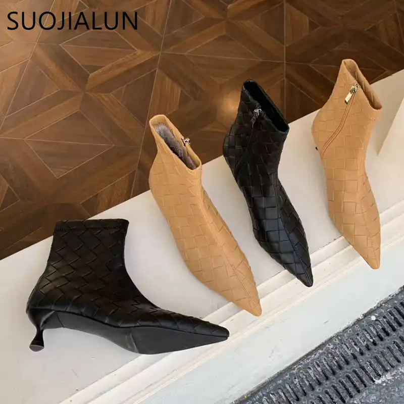 Suojialun Bout Pointu Femmes Bottines Mode Armure En Cuir Souple Pu Bottes Courtes Chaussures Mince Talon Haut Fermeture Eclair Chelsea Bottes Aliexpress