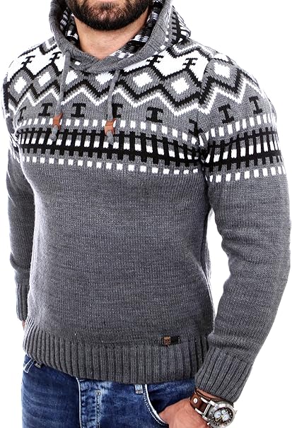 Reslad Rs 3013 Pull D Hiver Norvegien A Capuche Pull En Tricot Pour Homme Amazon Fr Vetements Et Accessoires