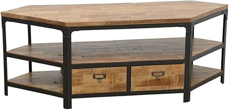 Nomadde Industriel Meuble Tv D Angle 2 Tiroirs Wolof Finition Naturelle Vieillie Finition Recycle Naturel Vieilli Bois Massif D Hevea Fer Amazon Fr Cuisine Maison