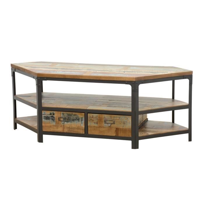 Industriel Meuble Tv D Angle 2 Tiroirs Wolof Recycle Achat Vente Meuble Tv Industriel Meuble Tv Soldes Sur Cdiscount Des Le Janvier Cdiscount