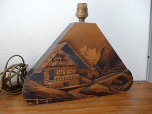 Rare Pied De Lampe En Bois Sculpte Signe Cleal Deco Montagne Ski Chalet 2 Ebay