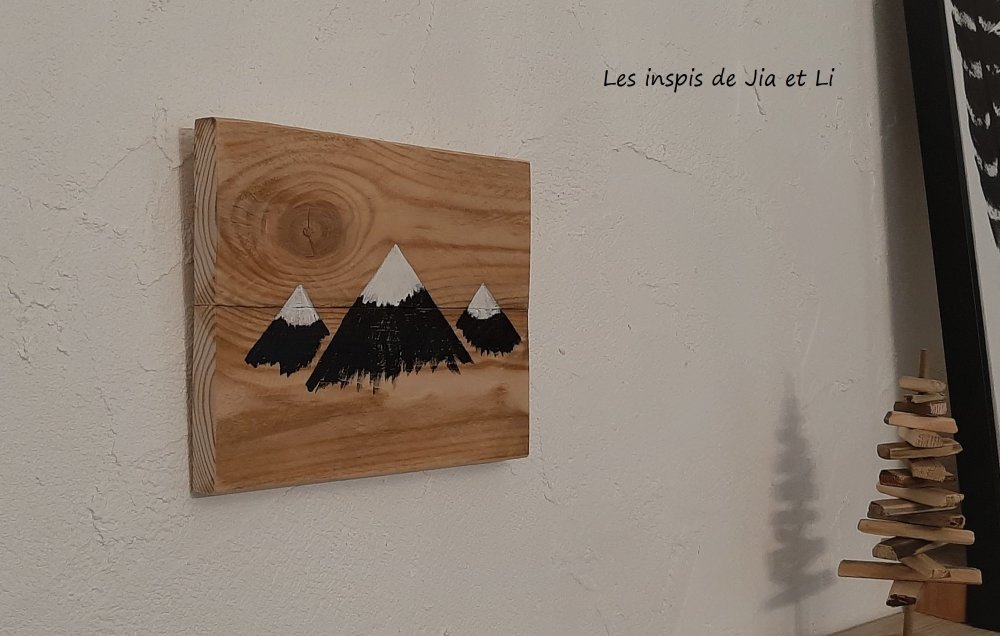 Tableau Montagne En Bois De Palette Deco Murale En Bois Recycle Decor Ski Chalet Un Grand Marche