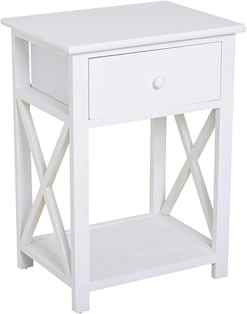 Homcom Table De Chevet Table De Nuit Style Cosy Avec Croix Laterales Tiroir Et Etagere Bois Et Mdf Blanc Amazon Fr Cuisine Maison