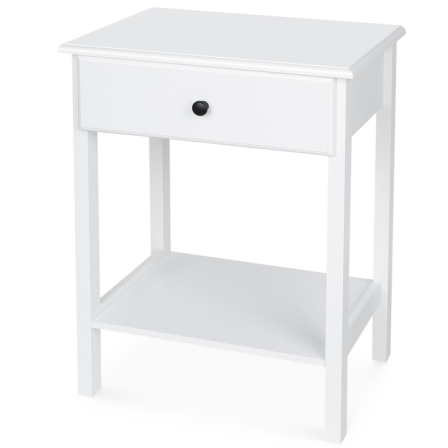 Yaheetech Table D Appoint En Bois Bout De Canape Blanc Table De Chevet Avec 1 Tiroir Et 1 Etagere De In Wooden Bedside Table Wooden Nightstand Chic Bedside Table
