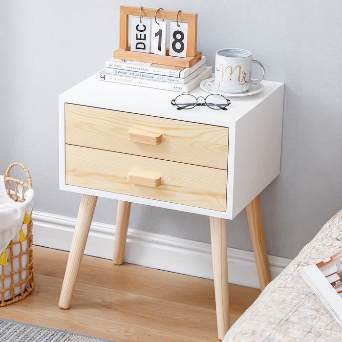 Table De Chevet 2 Tiroirs En Bois Blanc Scott Decoinparis