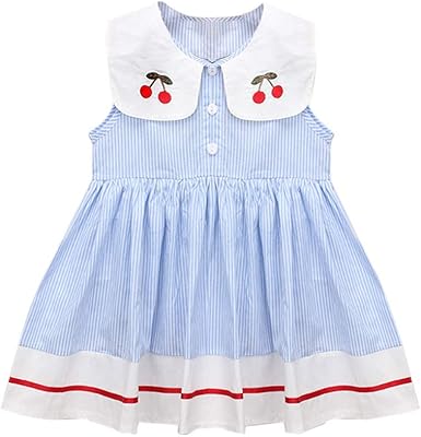 Urmagic Robe Bebe Fille Robe De Princesse Sans Manches A Rayures Avec Broderie Cerise Pour 0 24 Mois Amazon Fr Vetements Et Accessoires