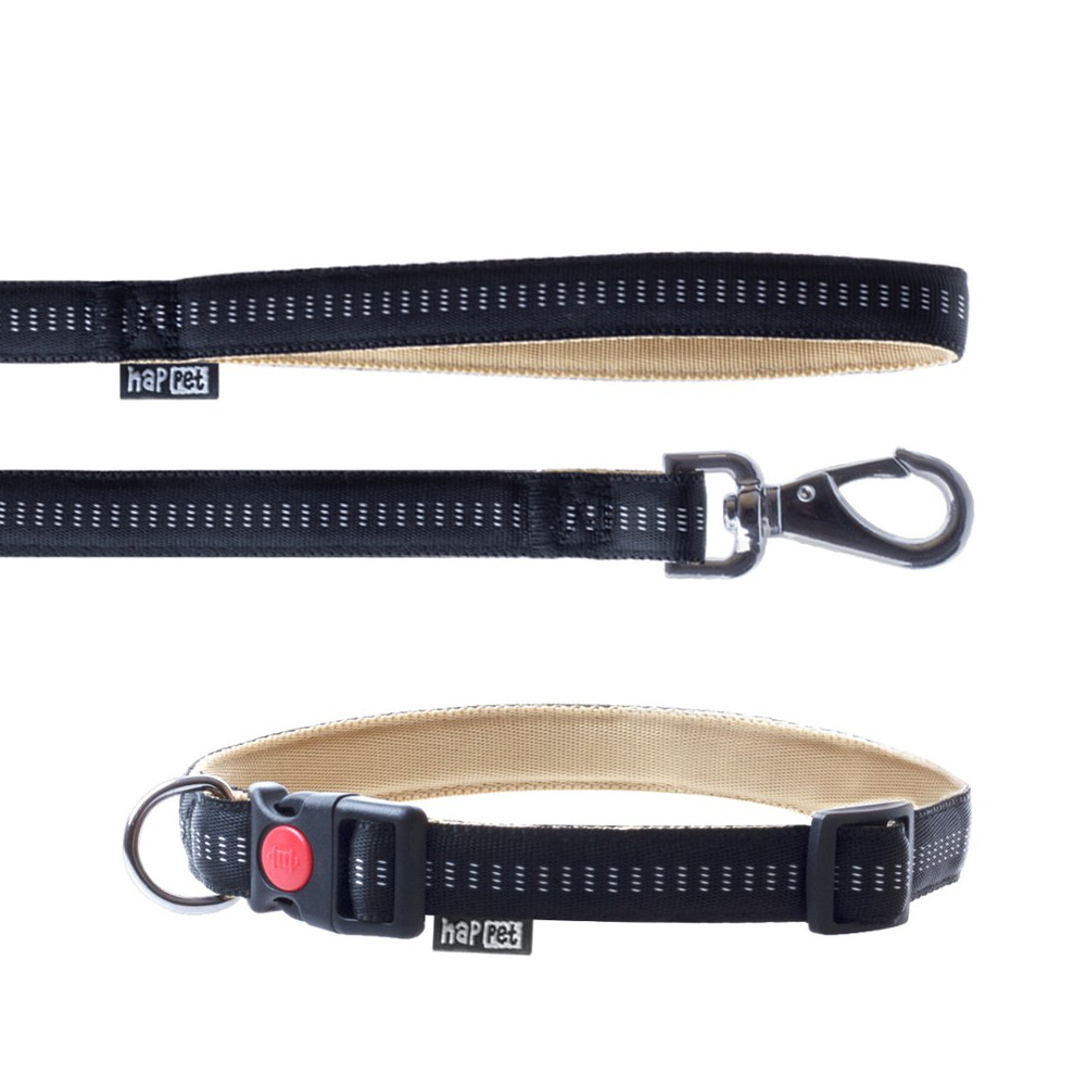 Laisse Et Collier Soft Style 2 5 Cm Taille Xl 40 A 64 Cm X L 1 Cm En Nylon Beige Noir Pour Chien Jb44 Happet