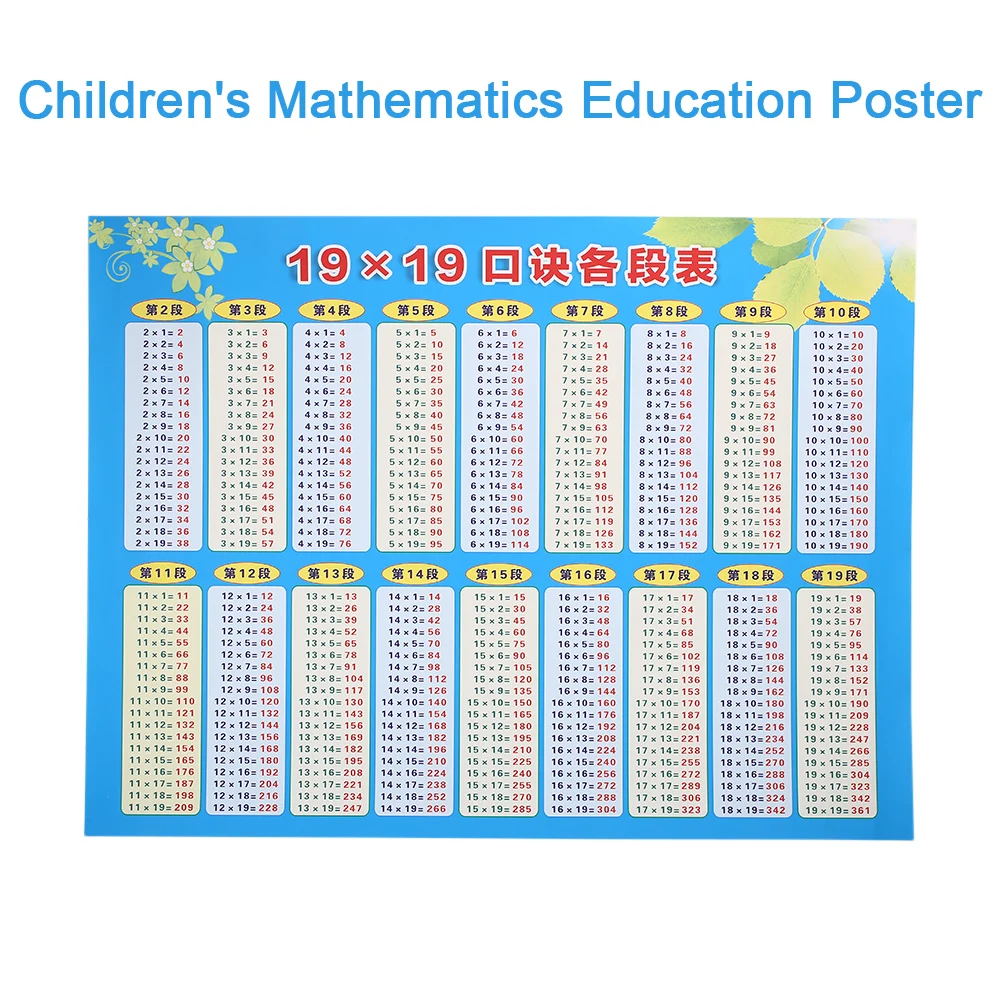 Waterproof 19x19 Multiplication Table Multiplication Table Children S Mathematics Education Poster Math Toy Professional Chart Mathematics Aliexpress
