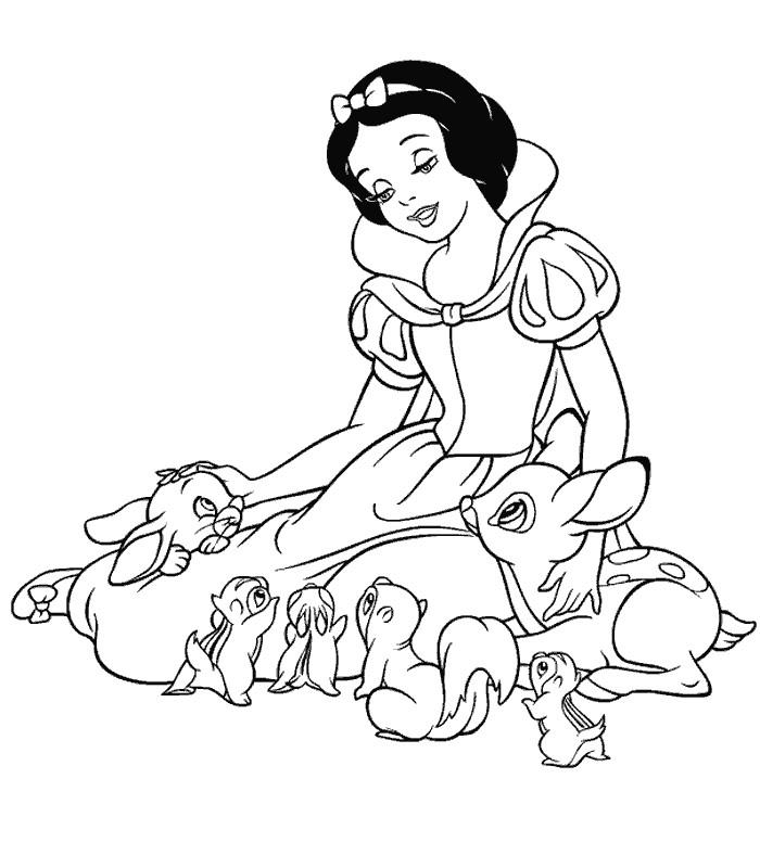 Coloriage Blanche Neige Avec Les Animaux Dessin Blanche Neige A Imprimer