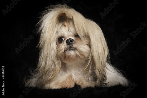 Shih Tzu Dog Shih Tzu In Front Of A Black Background Canstock