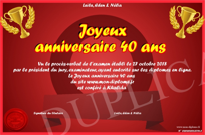 Diplome De Joyeux Anniversaire De Tes 40ans