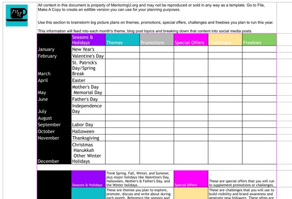 Social Media Strategic Plan Worksheet Social media isn’t a conversation, it’s where the conversation takes place Go beyond chasing shiny objects, and build a logical, sustainable social media strategy that focuses on measurable business objectives – not Twitter followers. How to Plan 1 Month of Social Media Posts at a Time 1 Set aside a time where you can focus for a couple of hours This time should be at least 2 weeks before a new month begins This will allow you time to plan the month, give it some detailed thought, and act on any necessary assignments before the month begins. A social media calendar template lays out everything you plan to share for a particular time frame, including message, link, and visual You can set up the social media content calendar template for whatever channels you use, like Twitter, Facebook, and Instagram.