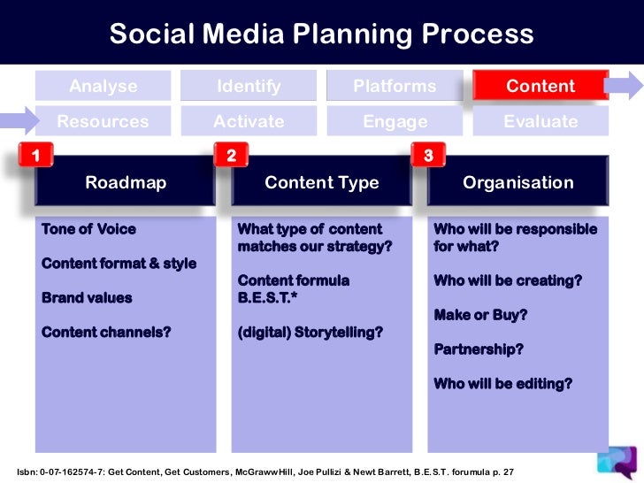 A Social Media Strategy is a plan of action designed to achieve your brand’s social media objectives and goals A social media marketing strategy should define the main aim of your brand presence on social media channels and set the parameters for Why your brand is investing in social media marketing (the reason for). Social Media Tactical Plan This is a great eBook that covers the plan for blogs, social networks, online video, photo sharing sites and presentation sharing You will learn how to identify objectives, action items and key metrics for different platform ranging from blogs to LinkedIn to Facebook and more 2. Media planning is the process by which marketers determine where, when, and how often they will run an advertisement in order to maximize engagements and ROI The media plan might split advertising spend and resources between various online and offline channels such as broadcast, print, paid ads, video ads or native content.