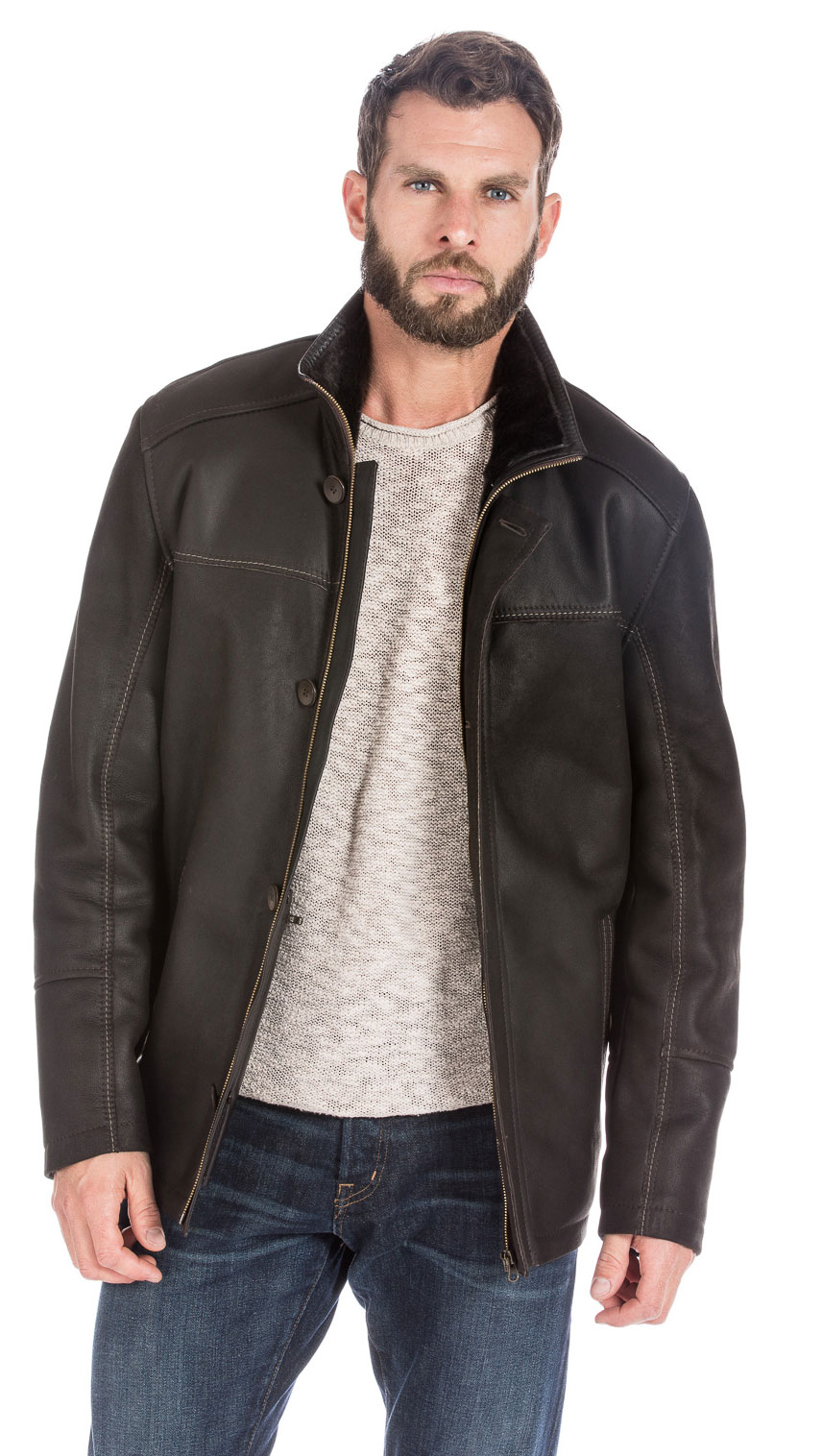 Veste Homme Cuir Agneau Modele Barnet Agneau Plonge Noir Fabrication Francaise