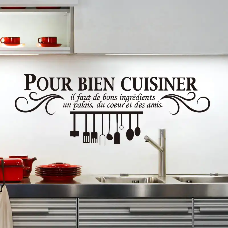 Voici notre sticker citation cuisine POUR BIEN CUISINER, un proverbe qui signifie que la cusine est sens de partage Stickers pour décoration murale intérieure, à coller sur tout support lisse (mur, meuble, électroménager) Fabrication française. DIY Miroir Argent Stickers Muraux de la Cuisine avec 12 Pièces Autocollants Muraux Papillon 3D Amovibles pour Cuisine Salle à Manger Sticker Mural 4,4 sur 5 étoiles 135 8,99 € 8,99 €. Dans cette catégorie vous retrouverez notre gamme de stickers cuisine, stickers bon appétit, stickers recette de cuisine, stickers top chef Personnalisez vos murs, portes, plafonds et autres avec différents univers et stickers originaux Nos stickers décoratifs de cuisine apporteront une touche d'originalité et modernité à vos murs.