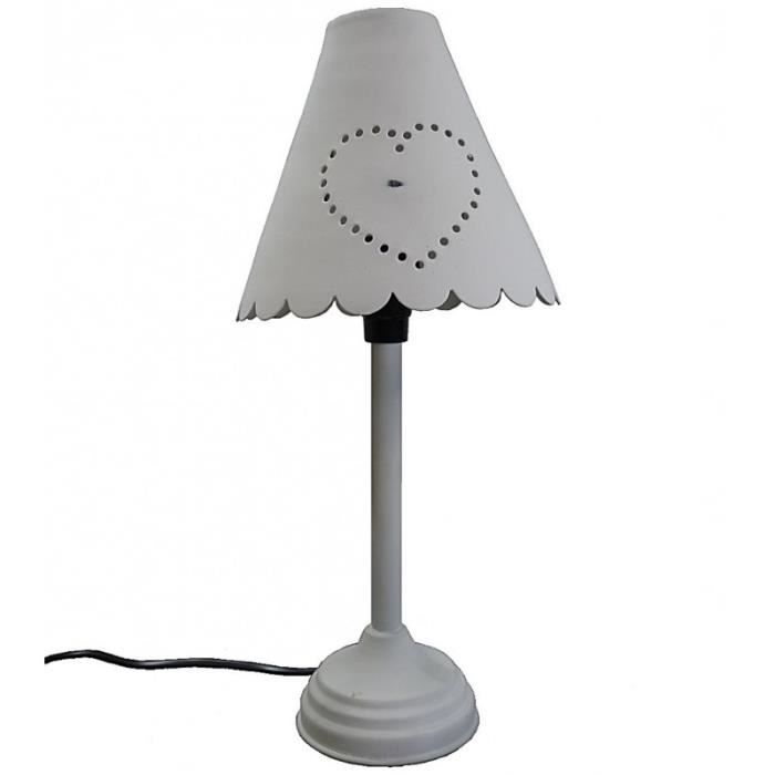 Petite Lampe De Chevet Luminaire D Ambiance A Poser Sur Pied En Fer Blanc Et Abat Jour En Metal 16x16x37cm Achat Vente Petite Lampe De Chevet Soldes Sur Cdiscount Des