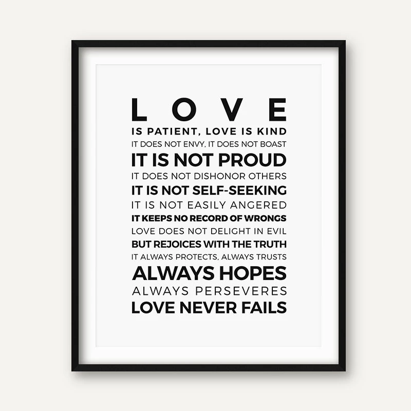 Love Is Patient Love Is Kind 1 Corinthians 13 4 Scripture Art Framed Wall Art Type Poster Love Framed Art Framed Wall Art Posters Paintings Framed Wall Art Wall Papers Stickers Decals More