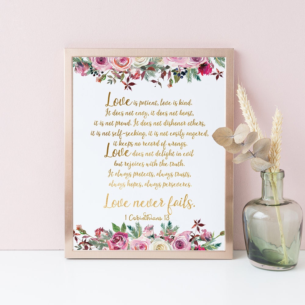Bible Verse Print Love Is Patient Love Is Kind 1 Corinthians 13 Love Never Fails