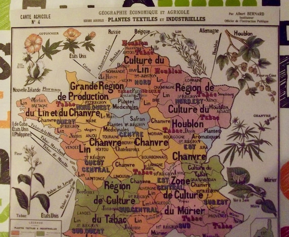 Poster Poster Map France Plantes Textiles Tobacco Lin Hemp Etsy