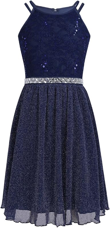 Yizyif Enfant Fille Lace Robe A Strass Paillettes Dentelle Robe Ceremonie Soiree Robe Sans Manche Robe Demoiselle D Honneur Robe Mariage Robe Princesse Danse Robe 6 14 Ans Bleu Marine 8 Ans Amazon Fr Vetements