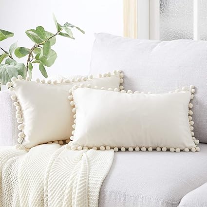 Topfinel 2 Housse Coussin 30x50 Blanc Creme En Velours Brillant Avec Boule Decor Scandinave Coussin Salon Interieur Decoratif Canape Moderne Chambre Amazon Fr Cuisine Maison