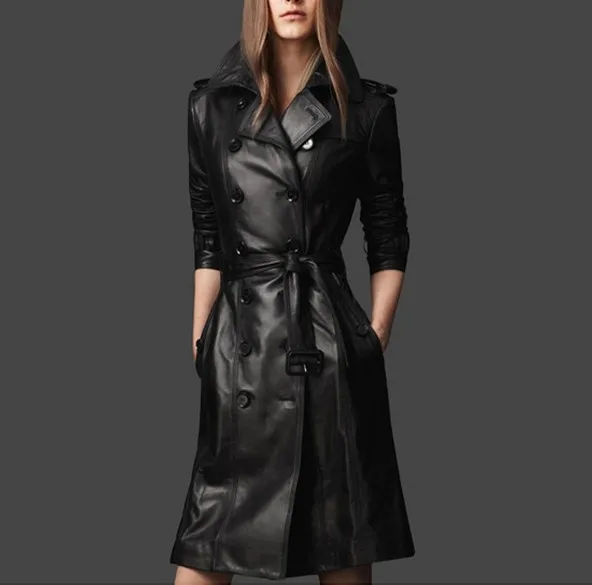 Veritable Cuir Longue Veste 21 Automne Hiver Femmes Double Boutonnage Classique Veritable Peau De Mouton Trench Manteau Pardessus Grande Taille Aliexpress