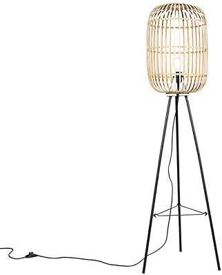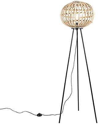 Qazqa Rustique Lampadaire Lampe De Sol Lampe Sur Pied Luminaire Lumiere Eclairage En Bambou Et Bambou Canna Bamboo Acier Beige Noir Globe Oblongue E27 Max 1 X 40 Watt Interieur Salo Amazon Fr Luminaires Et Eclairage